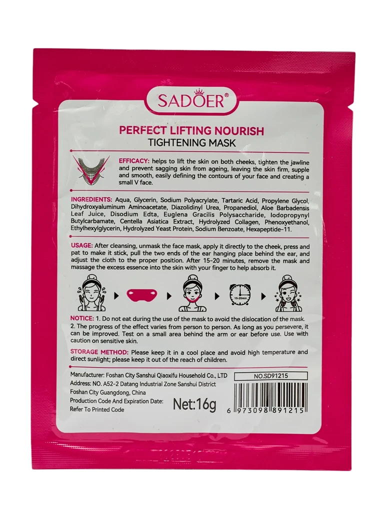 - Die Lifting-Maske Sadoer Venera V-line befeuchtet und strafft die Gesichtshaut. Reduziert Falten, verbessert die Konturen.