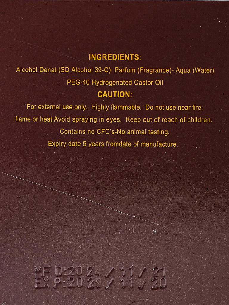 - Sinnliches Parfum, das die Frische von Mandarine und Apfel mit Zimt vereint und ein tiefes Herz aus Tabak und Myrrhe besitzt. Das Ganze ist in eine warme Basis aus Patchouli und Tonkabohne gehüllt. Eleganz und Charakter in einer Komposition.