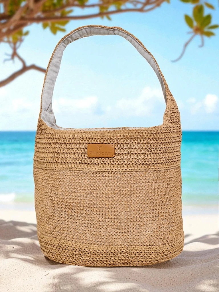 - Stilvolle Strohtasche mit einem Hauptfach und einer Innentasche, verschließbar mit Reißverschluss. Leicht und geräumig, perfekt für Sommertage. Ideal für legere Outfits, bietet sie Komfort und Organisation und bewahrt dabei einen modischen, sommerlichen C