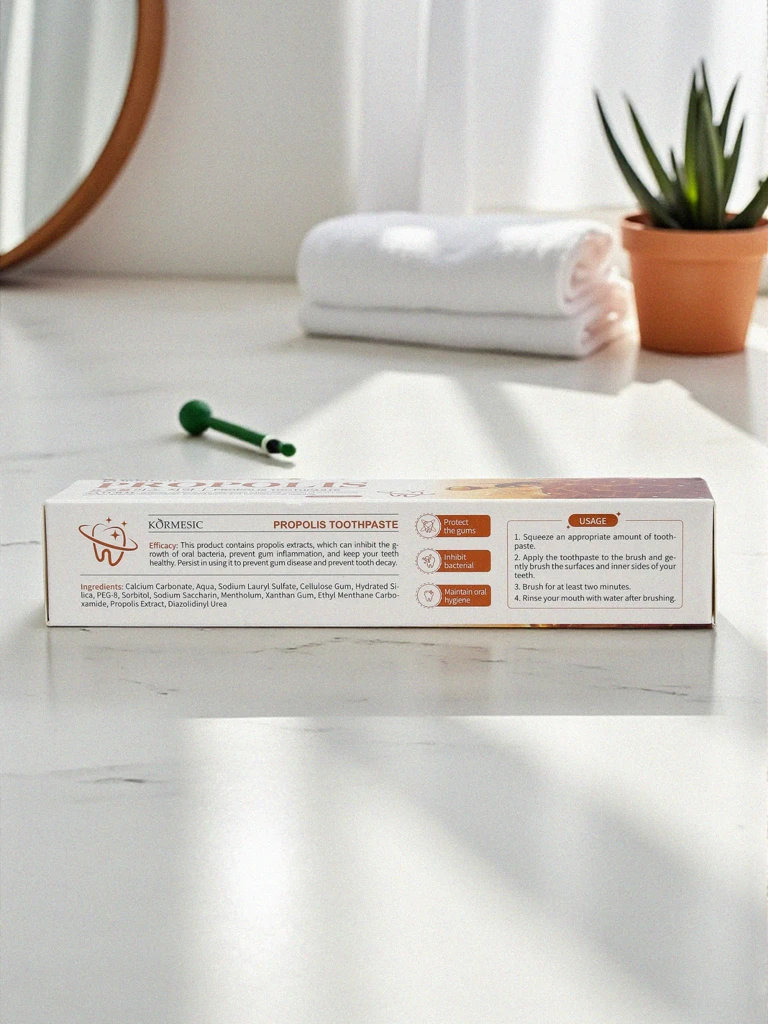 - Zahnpasta für empfindliche Zähne mit Propolis – beruhigt Empfindlichkeiten, schützt das Zahnfleisch und stärkt den Zahnschmelz. Natürliches Propolis wirkt antibakteriell und beruhigend, sorgt für frischen Atem und ein gesundes Lächeln – jeden Tag.
