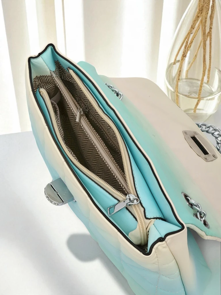 • Elegante Umschlagtasche aus Öko-Leder mit Ombre-Effekt. Mit Reißverschluss und Druckknopf verschließbar. Eine Metallkette anstelle eines Riemens verleiht ihr Chic. 1 Fach, perfekt für die wichtigsten Dinge für einen Abend oder besondere Anlässe.