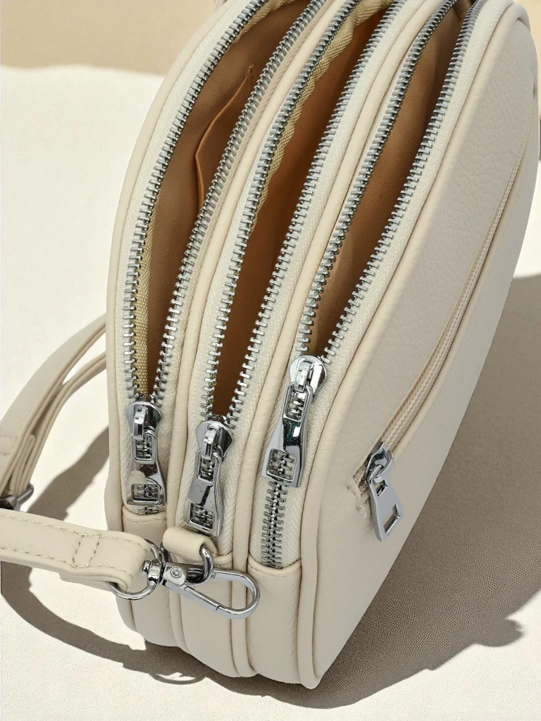 - Kleine Damenhandtasche aus Ökoleder mit 3 praktischen Fächern. Ausgestattet mit einem abnehmbaren, verstellbaren Schulterriemen – tragen Sie sie über der Schulter oder als Clutch. Kompakt, aber geräumig – perfekt für den Alltag und zum Ausgehen.