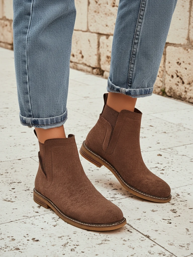 Damen Stiefeletten im Chelsea-Stil aus Öko-Wildleder Veysi