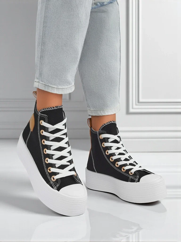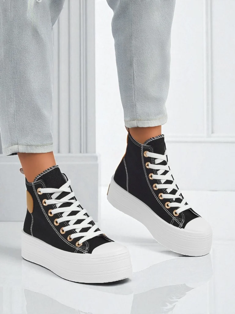 - Modische Stoff-Sneakers mit dicker Sohle. Bequem, leicht und stilvoll – ideal für urbane Styles und den Alltag. Komfort und Trend in einem Schritt.