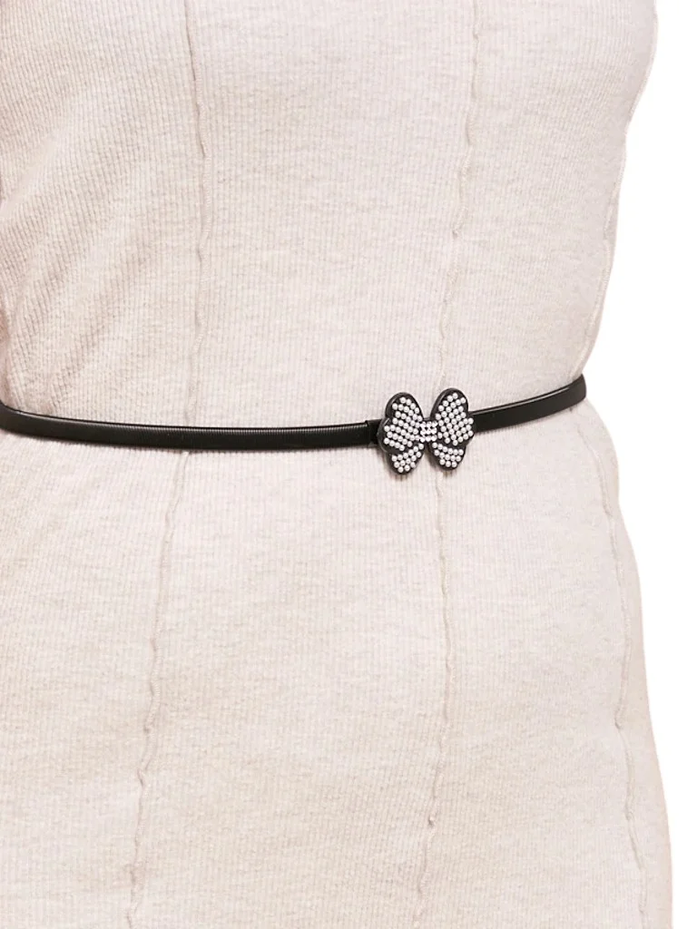 Schwarzer Damengürtel Melina mit Metallschleife im Latino-Glam-Stil