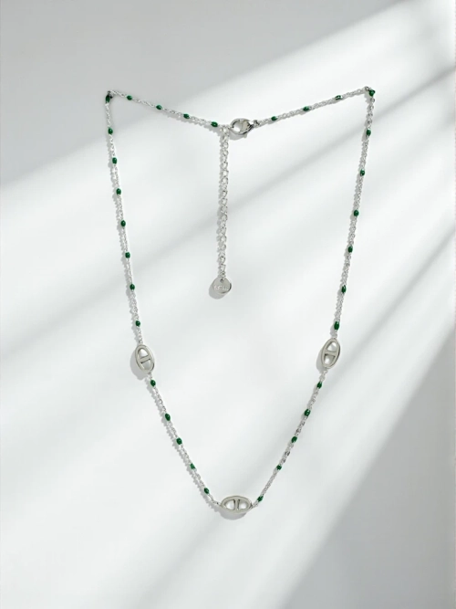 Naszyjnik Selene Argento ze srebra z zielonymi koralikami – styl klasyczny