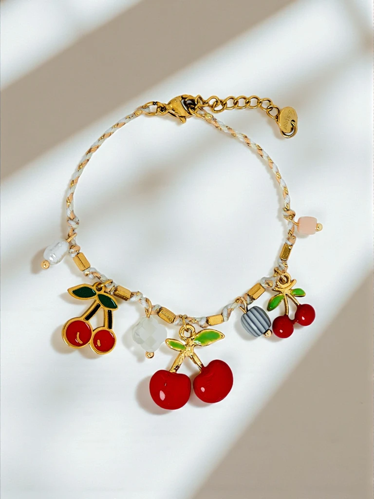 Name: Armband Ariadna Cherry – bunte Charms und goldene Details