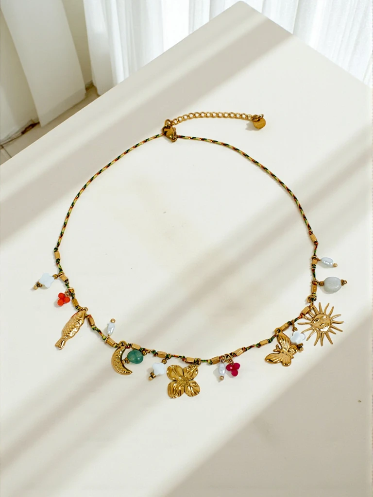 Halskette Atena Charm Collana – goldene Amulette mit Motiven aus der Antike