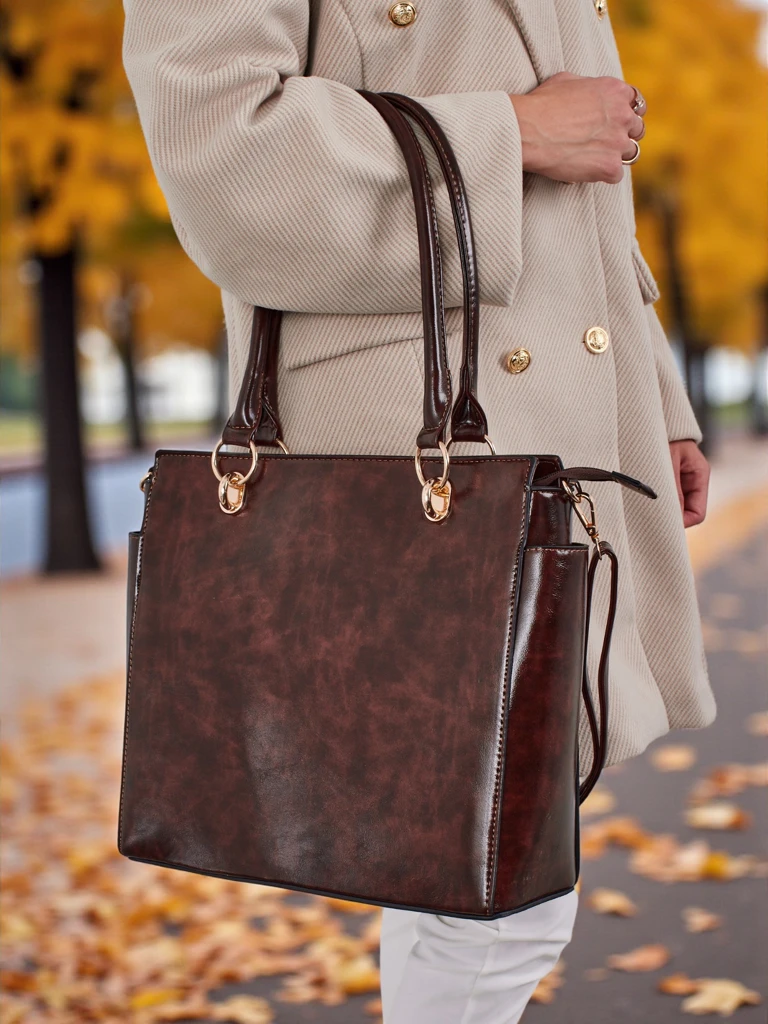 - Elegante Damenhandtasche aus Öko-Leder. 1 Fach mit Trennwand, 4 Taschen, abnehmbarer, verstellbarer Riemen. Ideal für Arbeit und Alltag – geräumig, modisch und praktisch.