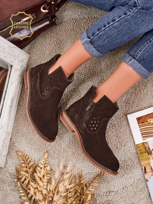 - Stiefeletten mit flacher Sohle - Stil und Komfort in einem. Der Ausschnitt am Knöchel und der Reißverschluss erleichtern das Anziehen. Komplett aus natürlichem Wildleder und Naturleder im Inneren gefertigt. Dieses Modell verleiht Ihnen Selbstvertrauen!
