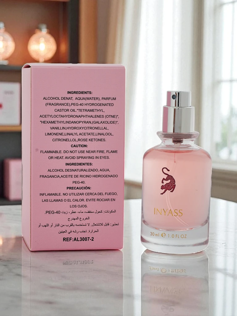 - Bulgarische Rose, Orangenblüte, Jasmin und rosa Pfeffer eröffnen den Duft. Das Herz bilden Pfirsich, Brombeere und Iris, während die Basis aus Vanille, Karamell, Moschus, Amber und Patschuli besteht und der Komposition eine fruchtig-blumige, süße und sinn