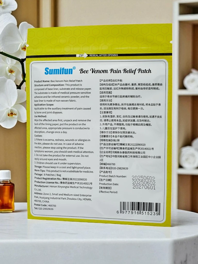 • Schmerzlindernde Pflaster mit Bienengift wirken lokal, lindern Muskel- und Gelenkschmerzen, fördern die Durchblutung und entspannen verspannte Körperpartien dank der natürlichen Eigenschaften von Bienengift.
