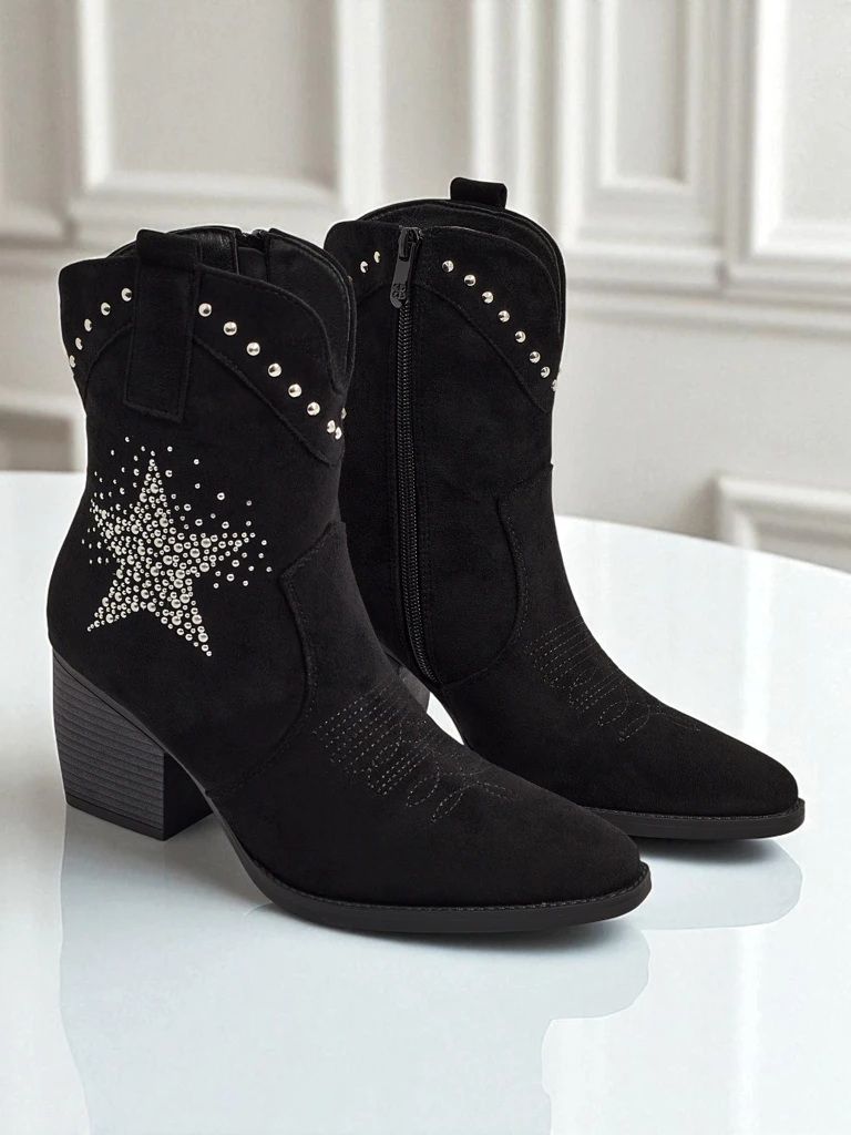 Damen Cowboystiefel mit Absatz und dekorativem Strassstern FableStray
