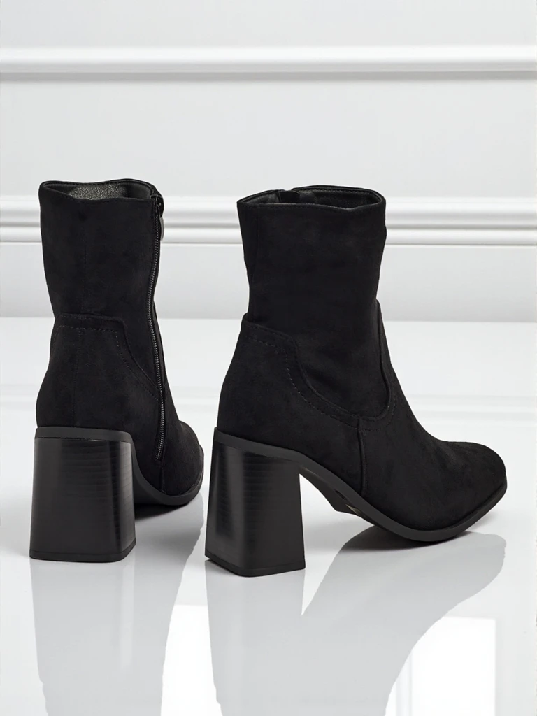 - Bequeme Stiefeletten mit Blockabsatz, gefertigt aus Wildlederimitat. Das Modell wird mit einem Reißverschluss geschlossen. Die ideale Wahl für den Herbst!