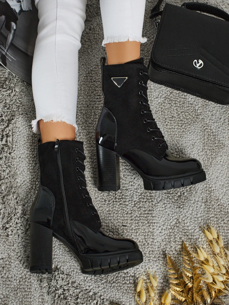 - Bequeme Stiefeletten mit Blockabsatz, gefertigt aus Öko-Wildleder und Öko-Leder. Das Modell ist geschnürt und mit einem Reißverschluss versehen. Die ideale Wahl für den Herbst!