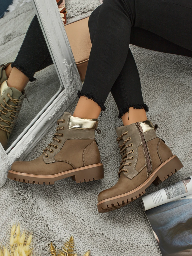 - Damen Trekking-Stiefel mit Schnürung und seitlichem Reißverschluss. Das Obermaterial besteht aus ökologischem Leder. Das Innere der Schuhe ist mit Fell gefüttert. Ideal für die Winterzeit!