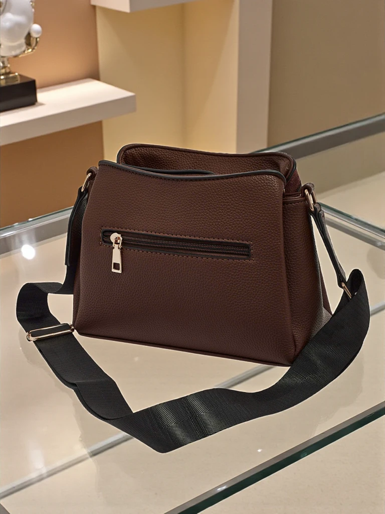 - Kleine Handtasche aus einer Kombination von Öko-Leder und Öko-Wildleder. 3 Fächer, 3 Taschen, Reißverschluss und verstellbarer Riemen. Stil und Funktionalität in Perfektion.