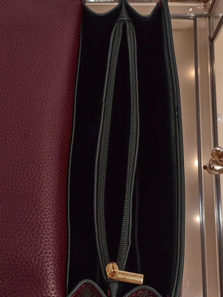- Kleine Handtasche aus einer Kombination von Öko-Wildleder und Öko-Leder. 1 Fach mit Trennwand, 2 Taschen, Reißverschluss und verstellbarer, abnehmbarer Riemen. Stil und Funktionalität in Perfektion.