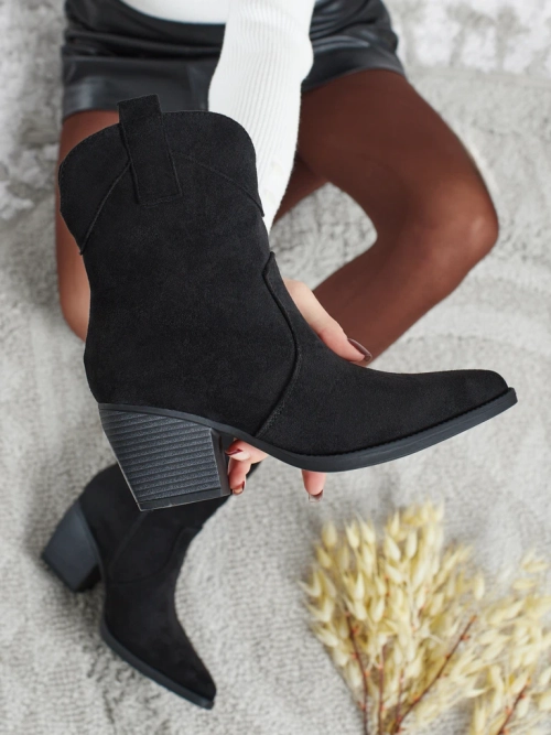 - Cowboystiefel im Stil von Stiefeletten mit Absatz, gefertigt aus ökologischem Wildlederimitat. Textile Innensohle, die Schuhe werden mit einem Reißverschluss geschlossen. Passen zu vielen femininen Stilen!
