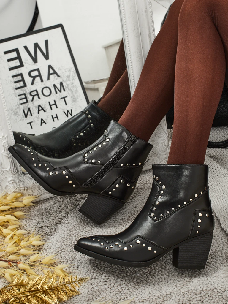 Damen Cowboystiefel mit Absatz und Nieten Glaciere