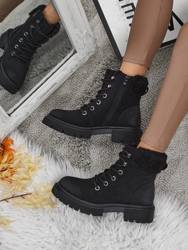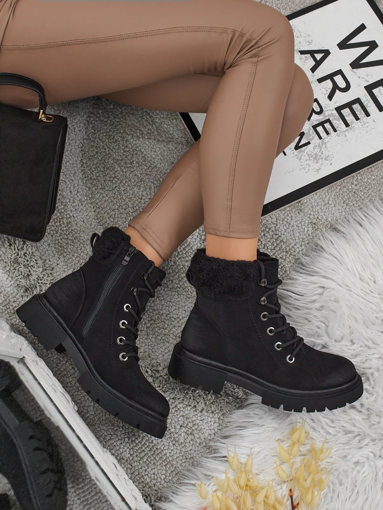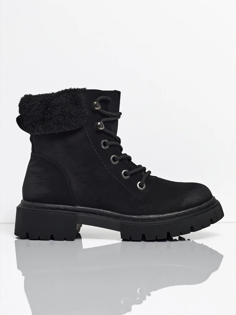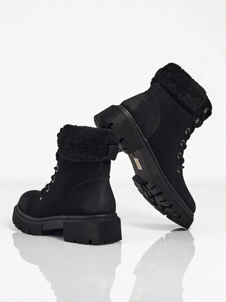 • Damen Trekking Trapper Stiefel mit Schnürung. Das Obermaterial besteht aus ökologischem Wildleder. Innen mit einem zarten Fell gefüttert. Ideal für die Winterzeit!