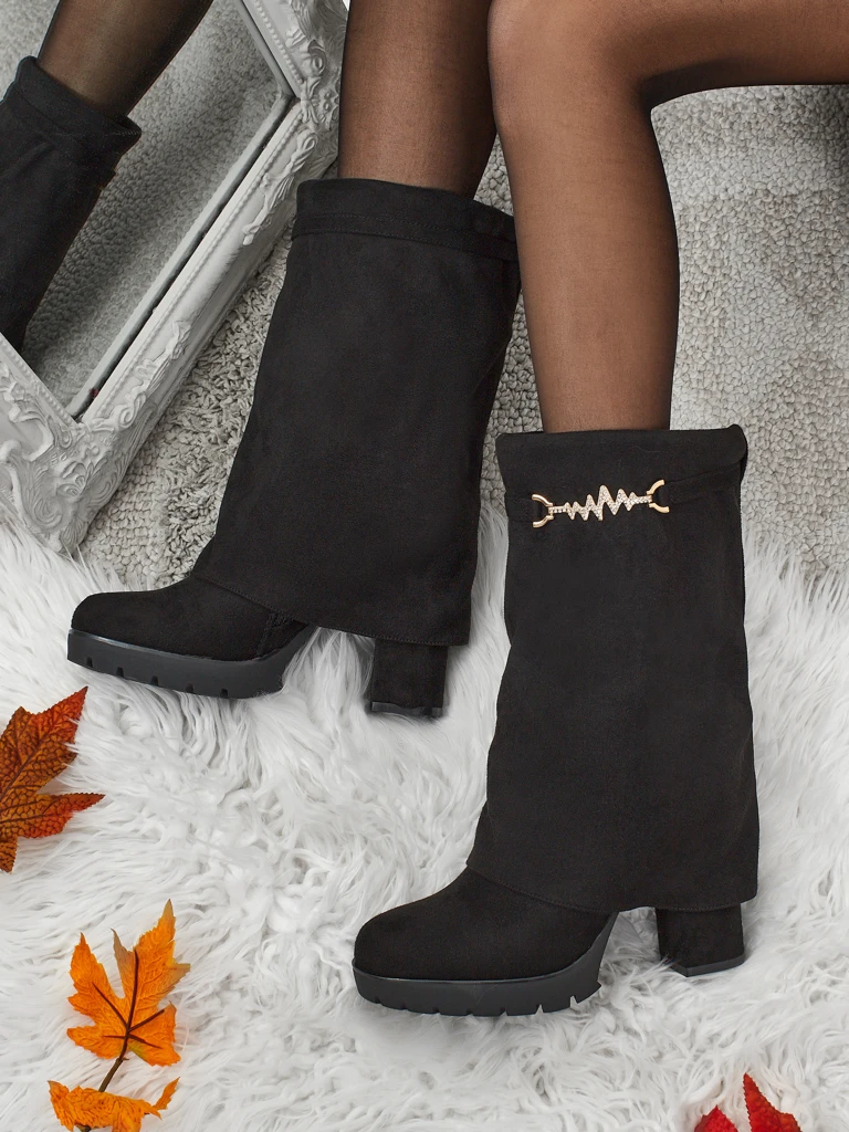 - Bequeme Stiefeletten mit Blockabsatz aus Wildleder-Eco-Leder. Das Modell wird mit einem Reißverschluss geschlossen. Das Modell ist leicht mit Fell gefüttert und hat eine Verzierung an der Seite des Schafts. Die ideale Wahl für den Herbst!