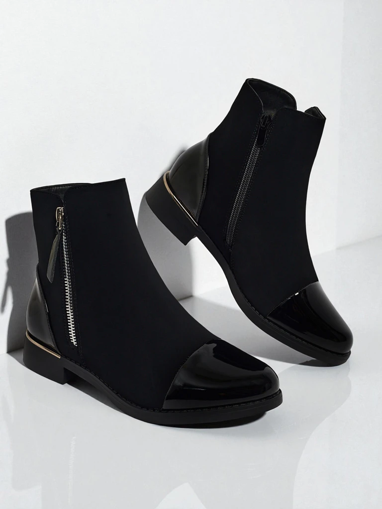 Die Luna Stiefeletten sind ein Vorschlag für Frauen, die elegante und funktionelle Schuhe für den Herbst suchen. Dank ihres minimalistischen Designs und der Kombination aus ökologischem Lackleder und mattem Leder passen diese Stiefeletten perfekt zu den aktuellen Modetrends. Die Luna Stiefeletten sind aus hochwertigen Materialien gefertigt und zeichnen sich durch sorgfältige Verarbeitung und Liebe zum Detail aus. Die äußere Schicht aus ökologischem Lackleder und mattem Leder sorgt nicht nur für ein ästhetisches Aussehen, sondern auch für Langlebigkeit. Elemente wie der Reißverschluss und der dezente goldene Einsatz verleihen ihnen einen einzigartigen Charakter. Dank des flachen Absatzes mit einer Höhe von 4 cm bieten die Luna Stiefeletten Komfort im Alltag. Sie eignen sich ideal für die Arbeit, für Treffen mit Freunden und für Spaziergänge in der Stadt. Ihr universeller Charakter macht sie perfekt für verschiedene Situationen, unabhängig vom Anlass. Styling-Vorschläge für die Luna Stiefeletten: 1. Casual Look - Tragen Sie sie zu Jeans, einem bequemen Sweatshirt und einer kurzen Jacke, um einen lässigen, aber modischen Look zu erzielen. 2. Smart Casual Look - Kombinieren Sie die Stiefeletten mit einem eleganten Rock oder einer Hose und einem Pullover, um ein zeitloses Outfit für das Büro oder ein Treffen zu kreieren. 3. Sportlicher/Urbaner Look - Sie sehen perfekt zu Leggings, einem T-Shirt und einer Sportjacke aus, was Ihnen einen dynamischen Charakter verleiht. Die Pflege der Luna Stiefeletten ist einfach - denken Sie einfach daran, die Außenfläche regelmäßig zu reinigen und sie an einem trockenen Ort aufzubewahren, um ihr ideales Aussehen zu erhalten. Diese Stiefeletten passen perfekt zu den aktuellen Trends, die Ökologie und Funktionalität fördern.