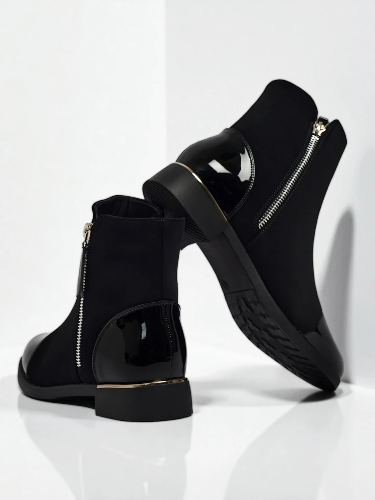 Die Luna Stiefeletten sind aus hochwertigen Materialien gefertigt und zeichnen sich durch sorgfältige Verarbeitung und Liebe zum Detail aus. Die äußere Schicht aus ökologischem Lackleder und mattem Leder sorgt nicht nur für ein ästhetisches Aussehen, sondern auch für Langlebigkeit. Elemente wie der Reißverschluss und der dezente goldene Einsatz verleihen ihnen einen einzigartigen Charakter.