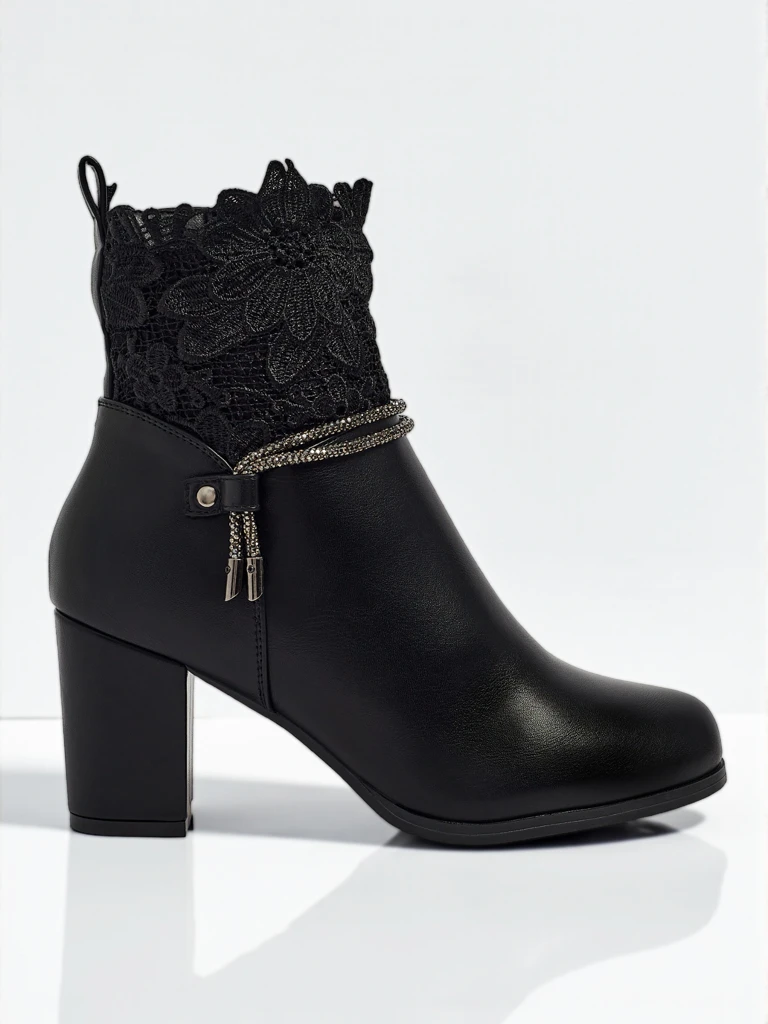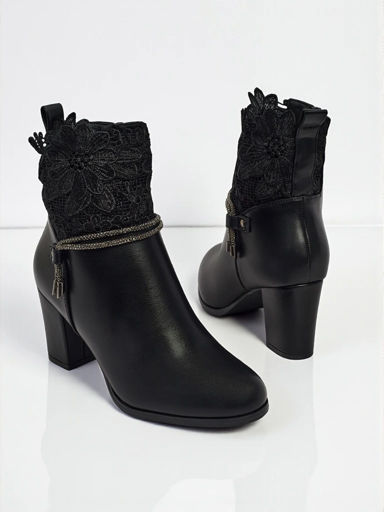 Die Luna Stiefeletten sind eine ausgezeichnete Wahl für Frauen, die Eleganz und Komfort schätzen. Sie wurden für das tägliche Tragen entworfen und eignen sich perfekt für verschiedene Anlässe, von Abendveranstaltungen bis hin zu formellen Treffen. Ihre klassische schwarze Farbe und die attraktive Verarbeitung mit Spitzendetails machen sie äußerst stilvoll. Die Luna Stiefeletten sind aus hochwertigem ökologischem Leder gefertigt und vereinen Ästhetik und Haltbarkeit. Darüber hinaus sorgt der flexible Schaft für eine gute Passform und der seitliche Reißverschluss erleichtert das An- und Ausziehen. Dekorative Details, wie die Zierkette, bringen einen Hauch von Modernität. Diese Stiefeletten wurden mit Blick auf den Tragekomfort entworfen, was sie zur idealen Wahl für alltägliche Styles macht. Sie können den ganzen Tag getragen werden, ohne auf Komfort zu verzichten. Sie eignen sich sowohl für das Büro als auch für Partys, wo sie eine ideale Ergänzung zu einem eleganten Outfit darstellen. Styling-Vorschläge: 1. Kombinieren Sie sie mit Jeans, einer einfachen Bluse und einer Lederjacke für einen lässigen Look. 2. Kombinieren Sie sie mit einem Midirock und einem eleganten Pullover für einen Smart-Casual-Look. 3. In Kombination mit Leggings, einem langen T-Shirt und einer Jacke kreieren Sie einen bequemen, urbanen Stil. Um lange Freude an den Luna Stiefeletten zu haben, empfiehlt es sich, sie regelmäßig mit einem feuchten Tuch zu reinigen und an einem trockenen Ort aufzubewahren. Ihr zeitloses Design passt zu aktuellen Modetrends, einschließlich der Beachtung von Ökologie und Funktionalität.