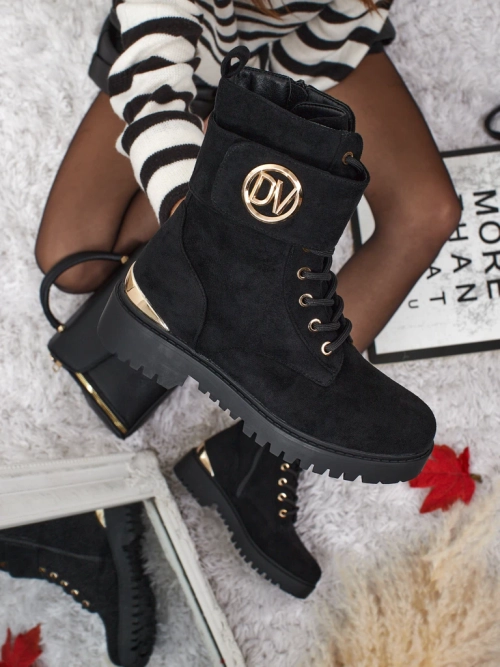 - Hohe Damen-Worker-Boots aus Wildleder-Öko-Leder, mit Schnürung und Reißverschluss. Modell mit flacher Sohle und zarter Isolierung in Form von Fell. Die ideale Wahl für die kältere Jahreszeit!