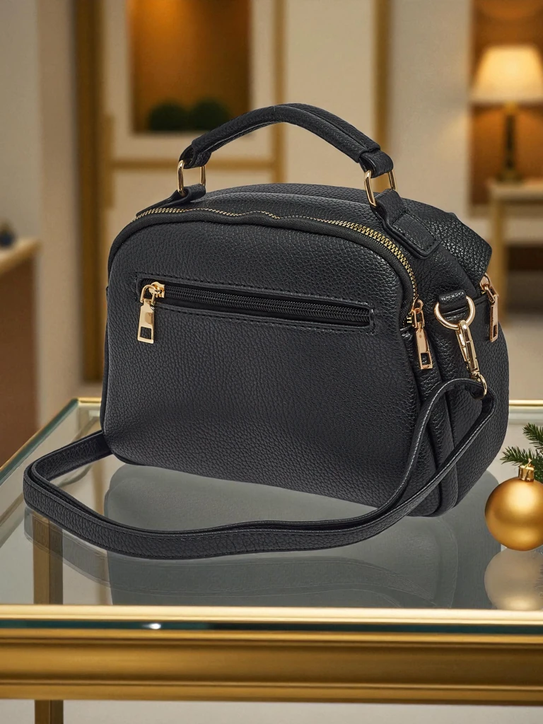 - Kleine Handtasche aus Öko-Leder. 1 Fach, 1 Tasche, Reißverschluss und abnehmbarer, verstellbarer Riemen. Stil und Funktionalität in Perfektion.