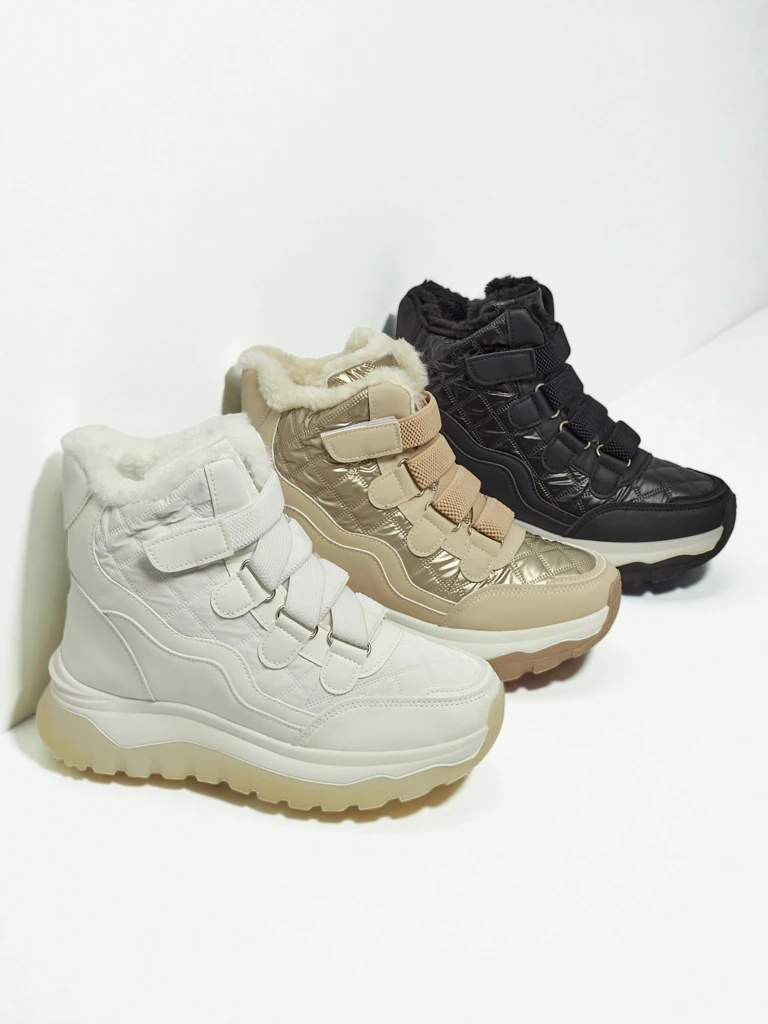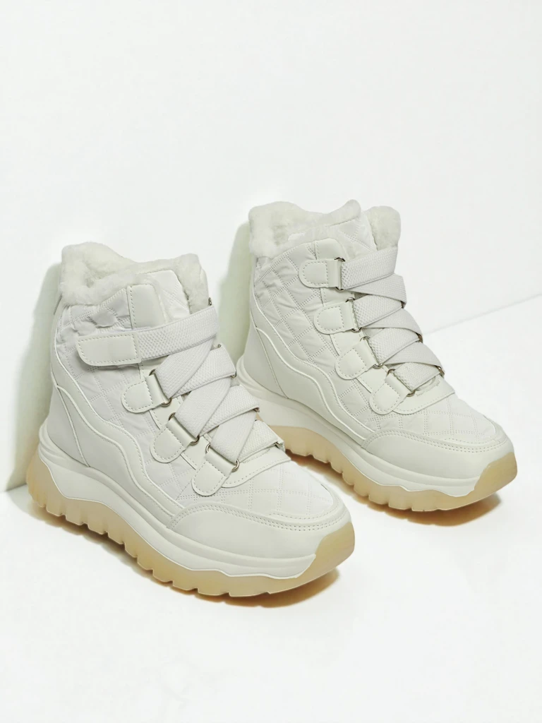 - Tolle Damen-Winterstiefel im Schneestiefel-Stil mit dicker Plateausohle. Das Obermaterial besteht aus ökologischem Leder und gestepptem Stoff, das Innere ist mit Fell gefüttert. Das Modell wird mit Klettverschluss befestigt. Eine ideale Basis für den Wint
