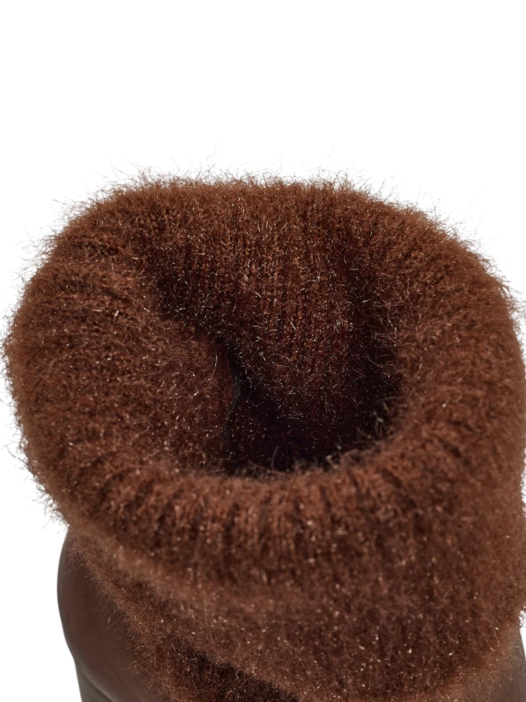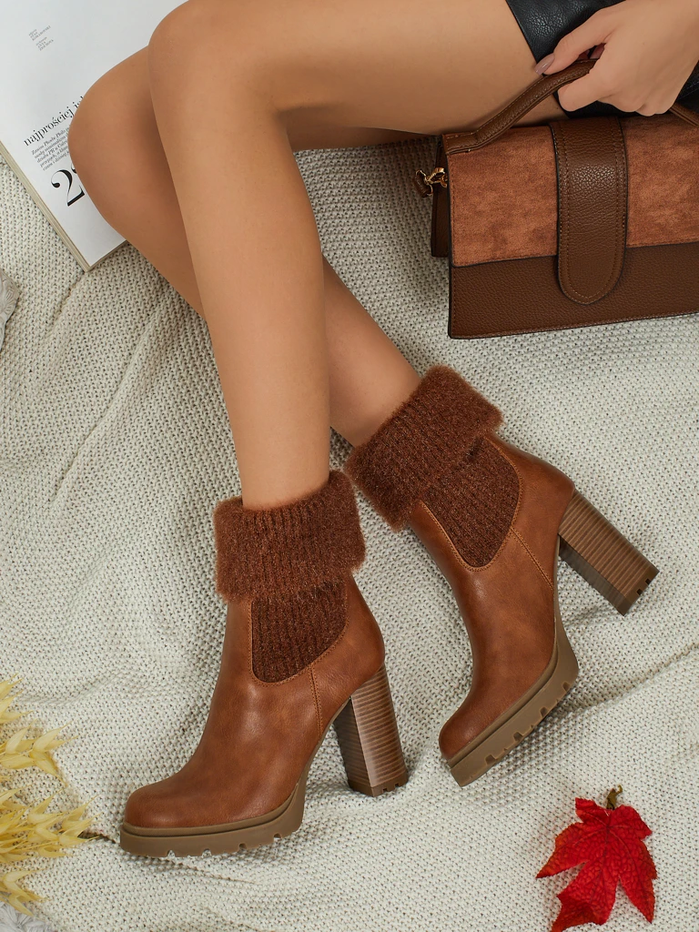 - Bequeme Stiefeletten mit Blockabsatz, gefertigt aus Öko-Leder und einem Strickwareneinsatz. Schlupfmodell. Das Modell ist leicht mit Fell gefüttert. Eine ideale Wahl für den Herbst!