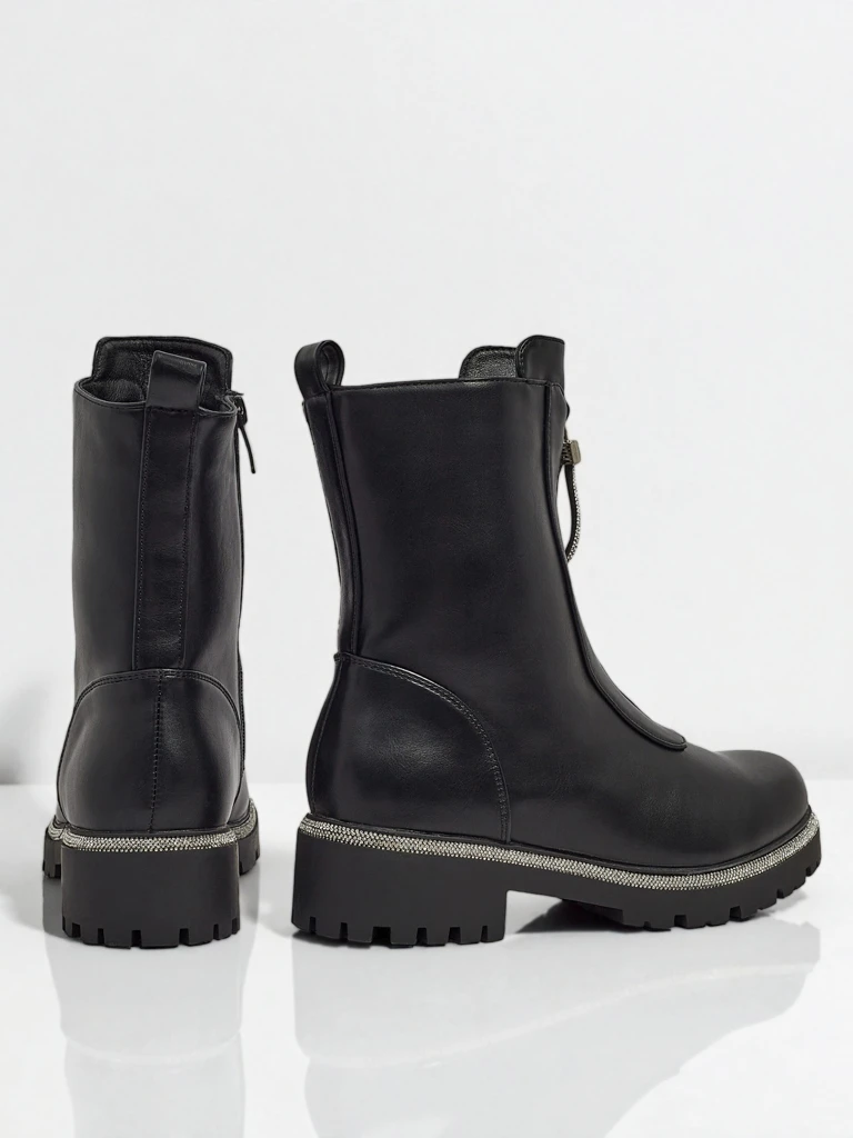 • Damenstiefeletten aus Öko-Leder, mit Reißverschluss und runder Spitze, zusätzlich mit Fell gefüttert – Modernität, Komfort und Stil in einem.