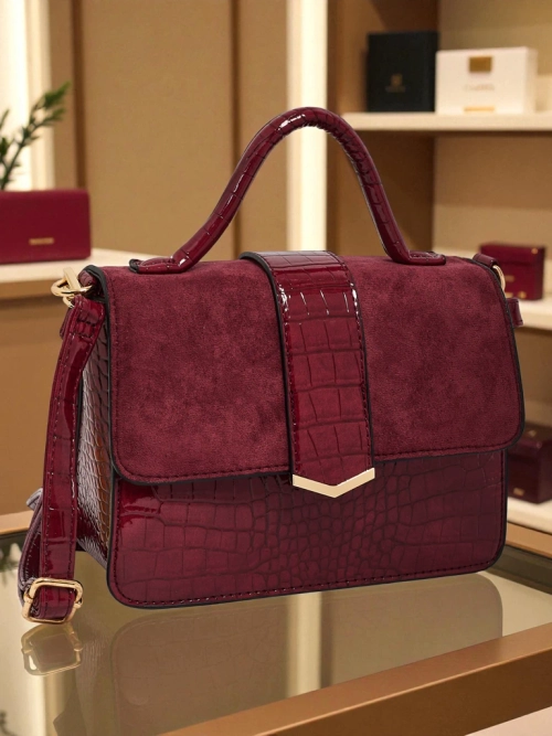 - Kleine Handtasche aus einer Kombination von Öko-Leder und Lack-Öko-Leder. 1 Fach, 3 Taschen, Reißverschluss und abnehmbarer, verstellbarer Riemen. Stil und Funktionalität in Perfektion.