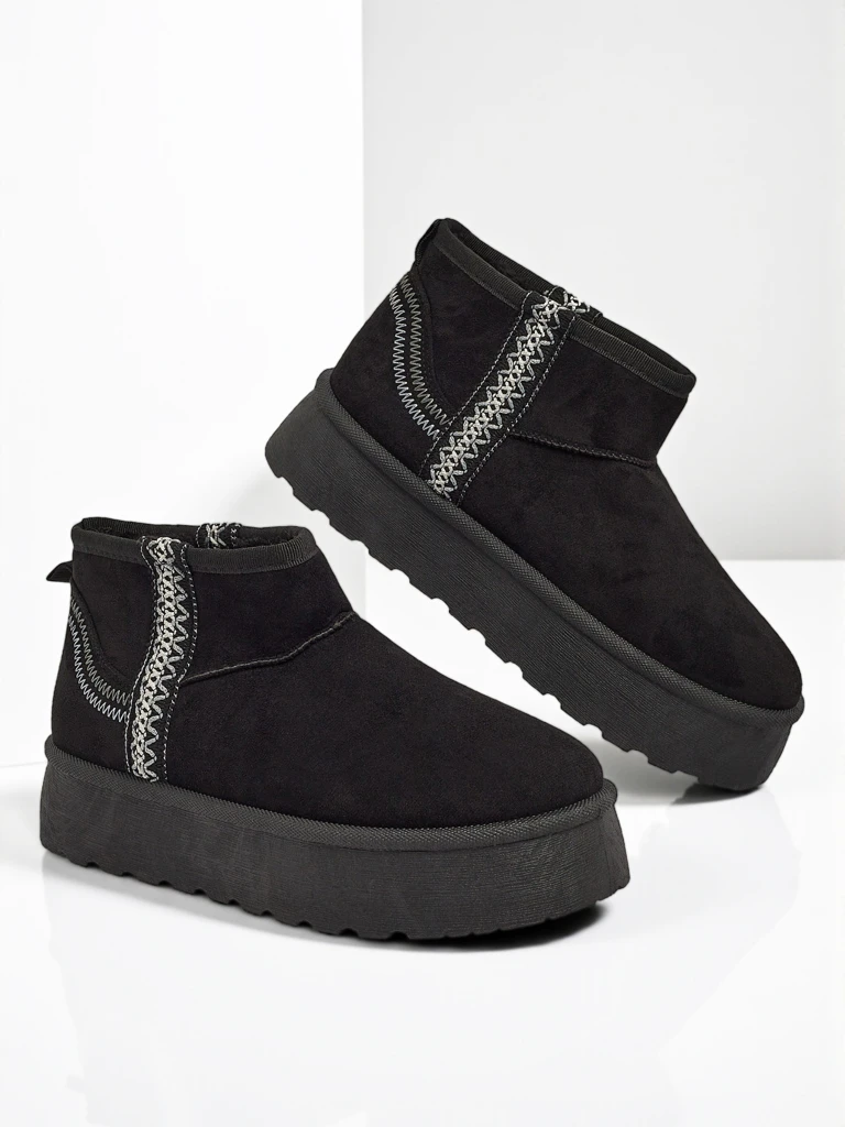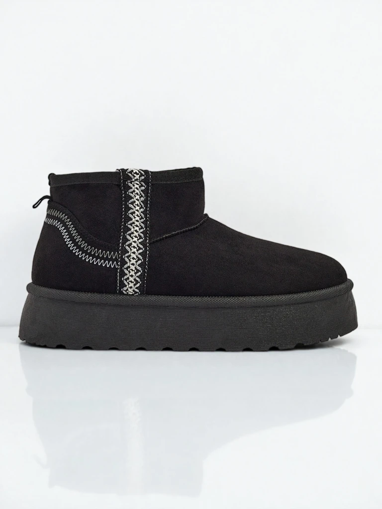 Die Damenstiefeletten Luna sind elegante Schuhe, die Komfort und Stil vereinen. Sie sind ideal für Wintertage und bieten dank der Wildlederoptik Wärme. Ihre klassische schwarze Farbe macht sie passend für viele Stile, sowohl für den Alltag als auch für besondere Anlässe. Es lohnt sich, dieses Modell wegen seines einzigartigen Designs und seiner hochwertigen Verarbeitung zu wählen.