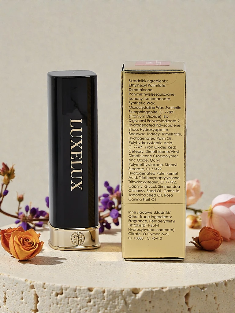 Der Luxelux Lippenstift wird aus hochwertigen Inhaltsstoffen hergestellt und bietet Tragekomfort und Pflege für die Lippen. Seine Formel wurde entwickelt, um Feuchtigkeit zu spenden und zu pflegen und gleichzeitig ein mattes Finish zu erzielen. Die Haltbarkeit des Kosmetikprodukts sorgt dafür, dass es lange auf den Lippen bleibt, was im täglichen Gebrauch wichtig ist. Die Liebe zum Detail in der Ausführung garantiert ein perfektes Endergebnis.