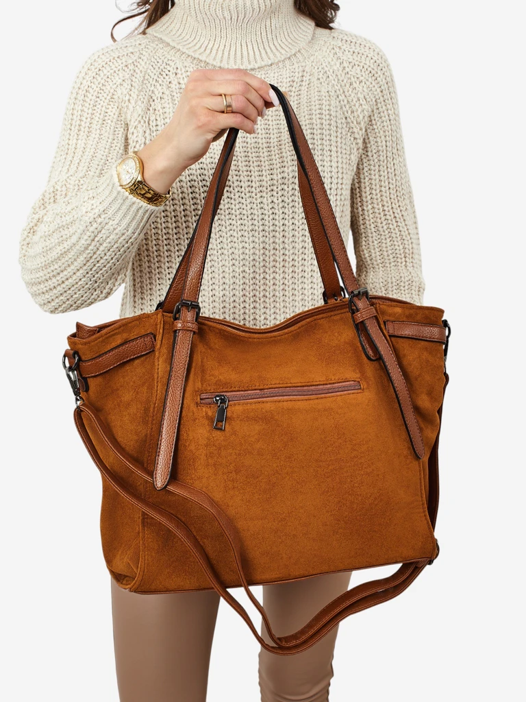 - Elegante Damenhandtasche aus ökologischem Wildlederimitat. 1 Fach mit Trennwand, 4 Taschen, abnehmbarer, verstellbarer Riemen. Ideal für die Arbeit und den Alltag – geräumig, modisch und praktisch.