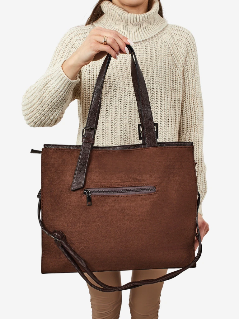 - Elegante Damenhandtasche aus ökologischem Wildlederimitat. 1 Fach mit Trennwand, 4 Taschen, abnehmbarer, verstellbarer Riemen. Ideal für die Arbeit und den Alltag – geräumig, modisch und praktisch.