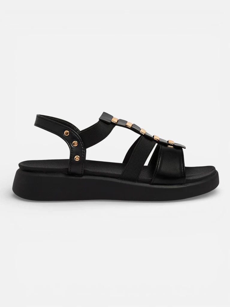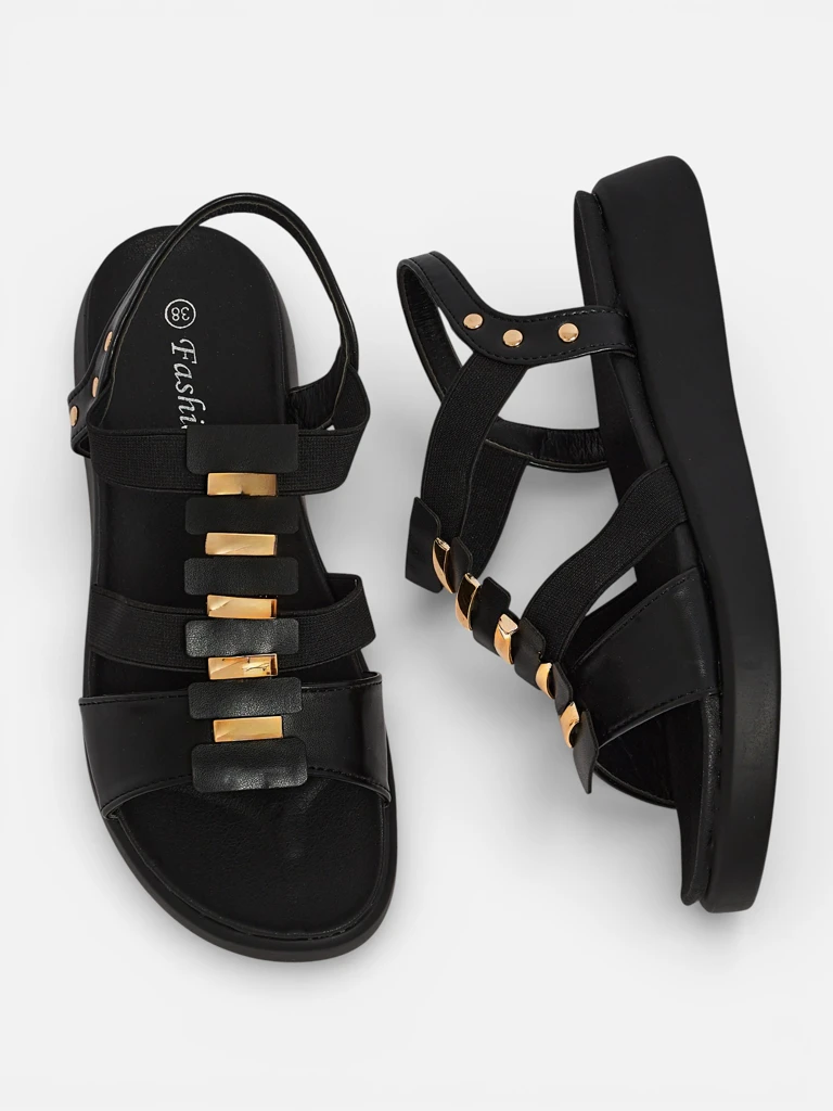 • Damen Römersandalen aus ökologischem Leder, verziert mit einem goldenen Akzent. Stilvoll und bequem – ideal für sommerliche, feminine Stylings mit einem klassischen Touch.