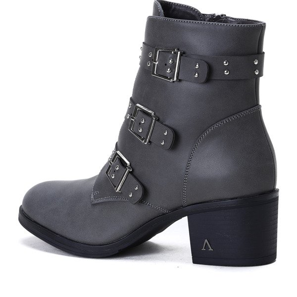 Graue Stiefel auf einem niedrigen Pfosten mit dekorativen Schnallen Aline - Footwear
