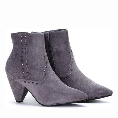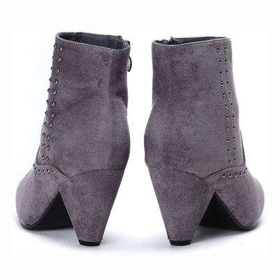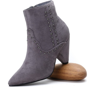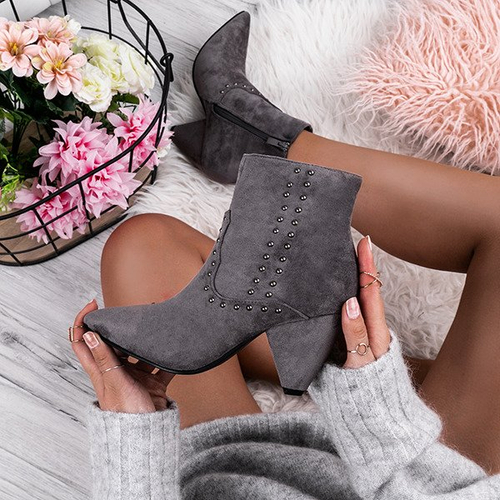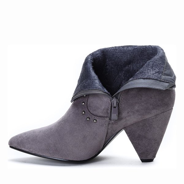 • Stiefel mit einem markanten dreieckigen Absatz aus Öko-Wildleder. Das Obermaterial ist mit Strasssteinen verziert und die Spitze endet in einer spitzen Zehe, die die Beine optisch verschlankt. Schuhe sanft mit Pelz isoliert.HINWEIS: das Modell hat eine sc