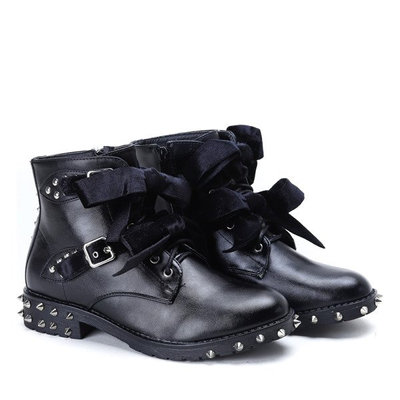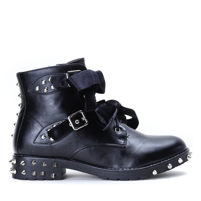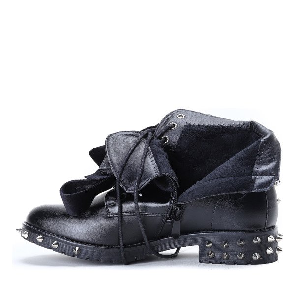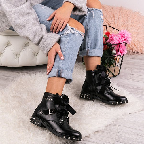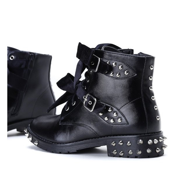 - Erstaunliche Taschen im Rock-Stil aus Öko-Leder. Modell geschnürt und mit Reißverschluss. Obermaterial und Sohle mit Nieten verziert. Zusätzlich haben die Schuhe ein mit Veloursband gebundenes. Isolierung in Form von mit Stoff überzogenem Schaumstoff.