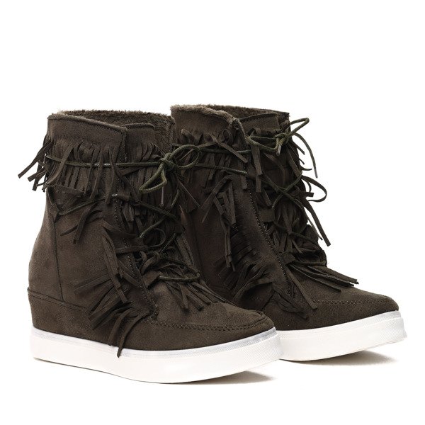 Dark green sneakers with fringes on an indoor wedge Kennedy - Footwear