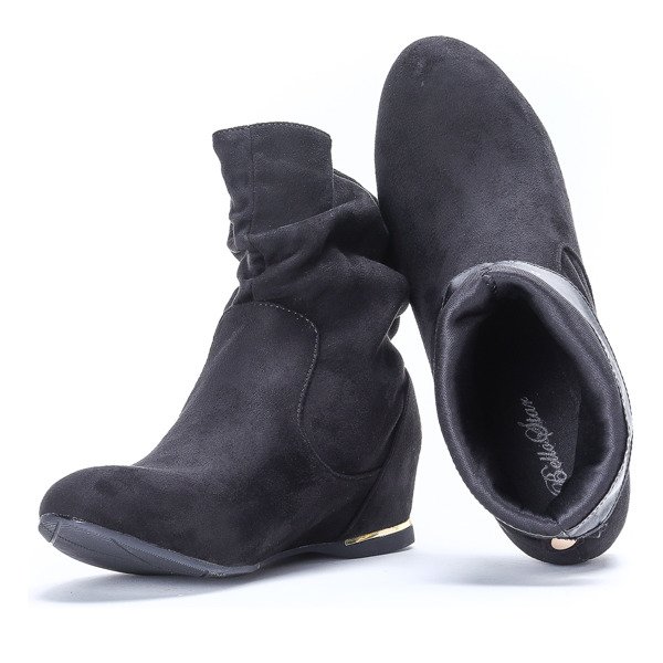 • Unglaublich bequemer Stiefel mit gedecktem Absatz. Das Obermaterial ist aus umweltfreundlichem Wildleder gefertigt. Innen haben sie eine zarte Erwärmung in Form von Schaumstoff mit Stoff bedeckt. Die Sohle ist mit einer goldenen Zierleiste auf der Rücksei