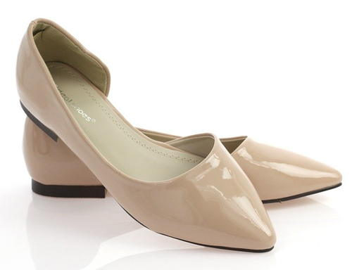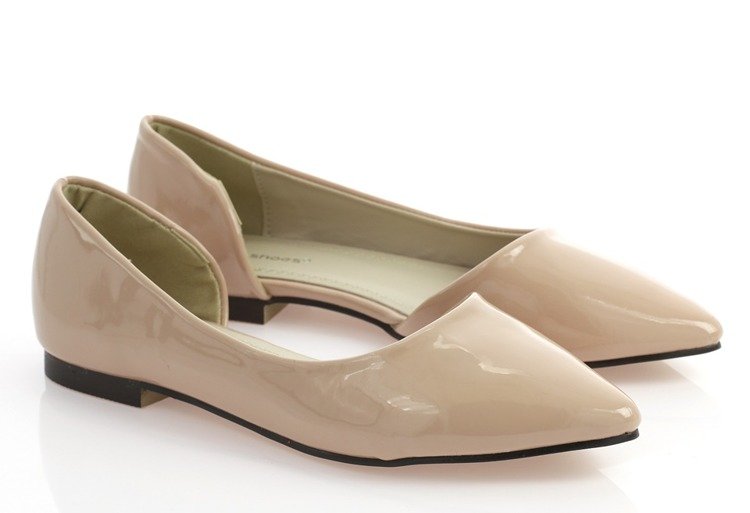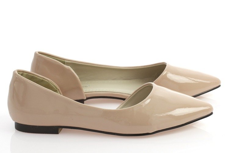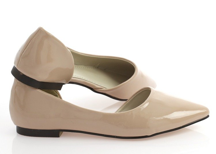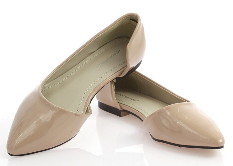 Beżowe balerinki z wycięciem - Obuwie