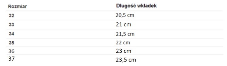 Табель розмірів - розміри дитячі не стандартні, перевірте табель