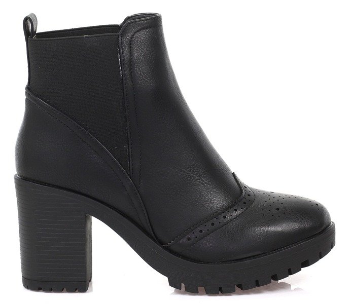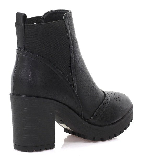 Czarne botki na słupku z ozdobnym noskiem - Obuwie