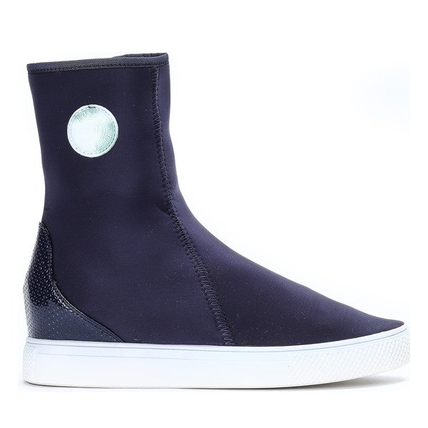 - Sportowe, niespotykane botki stylizowane trampkami. Cholewka wykonana z grubej, elastycznej pianki. Sportowy design, gumowa podeszwa. Zasuwane na suwak. W środku brak ocieplenia.