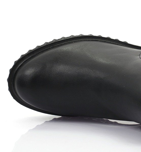 Czarne botki z tłoczeniem na podeszwie - Obuwie
